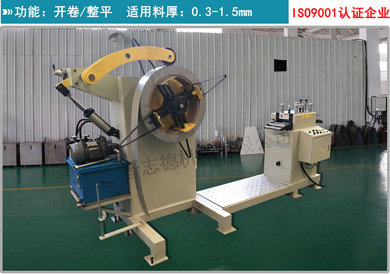1、本機(jī)采用下入料的整平方式,適用于0.3-2.0mm厚的金屬卷料開卷整平,集材料架、整平機(jī)兩項(xiàng)功能為一體,降低精密材料矯直過程中的過渡環(huán)節(jié),能大限度地發(fā)揮機(jī)器的使用性能。
